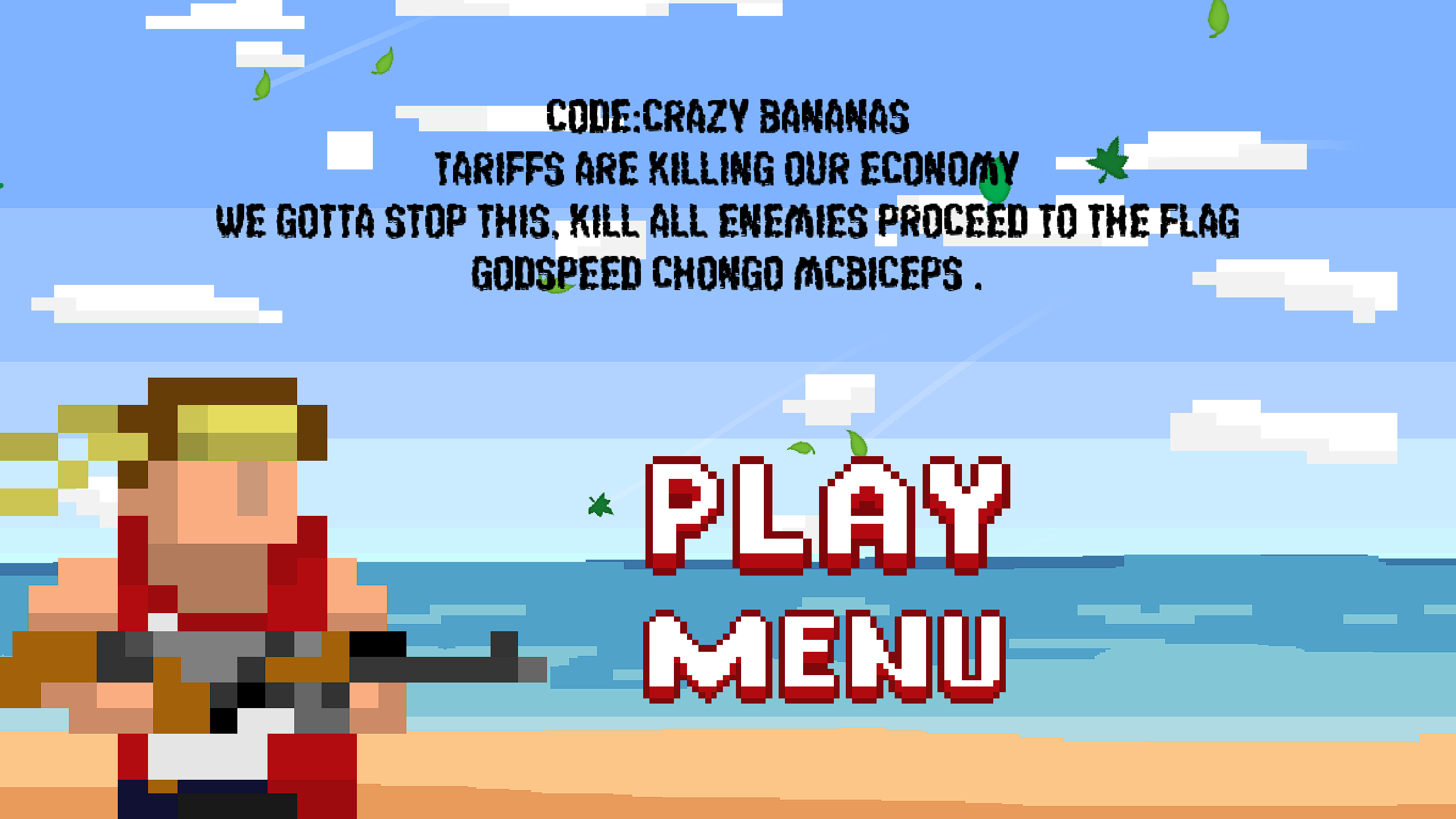 REDIRON is a side-scrolling, gun-blazing platformer where economic devastation meets explosive liberation. The tariffs are tearing the nation part - and you're the steel-jawed solution to this. Grab your guns, tighten your bandana, and unleash the American fury in to on every corrupt corporate warlord, globalist goon, and tariff-enabling traitor on sight.